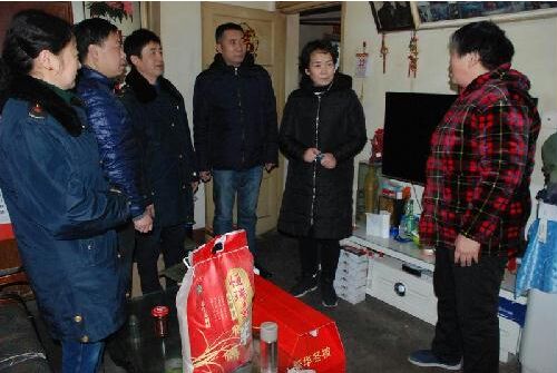 春节将至,1月22日,由郑州市工商局群众工作队与金水区工商质监局组成的慰问小组来到花园路街道办事处开展新春慰问活动,为甲院社区40名困难党员和群众送去棉被、面粉、大米、花生油等生活必需品,提前送上新年的祝福。慰问小组一行与困难党员和群众拉家常,亲切交流,详细了解他们的生活和家庭情况,鼓励他们坚定信心,在党和政府的关怀和帮助下,克服当前困难,尽快脱贫致富。