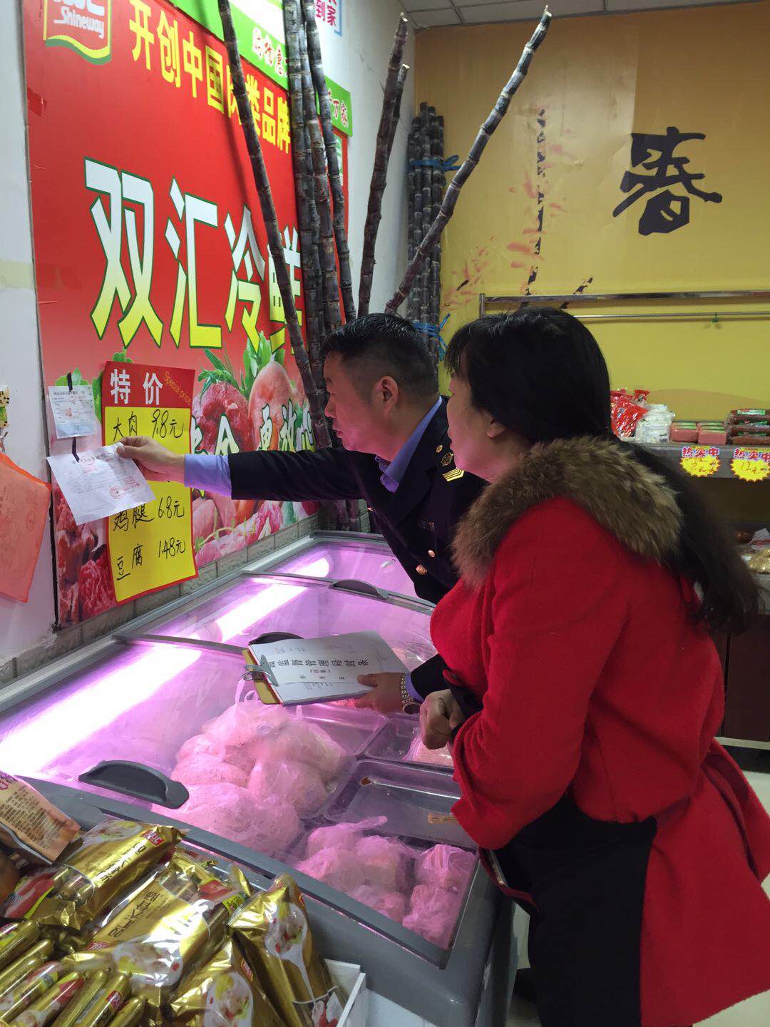 11月10日,中牟县官渡镇食药监管所对辖区生鲜肉交易点开展“两证两章”监督检查,进一步推进肉类流通追溯体系建立,切实保障公众饮食安全。