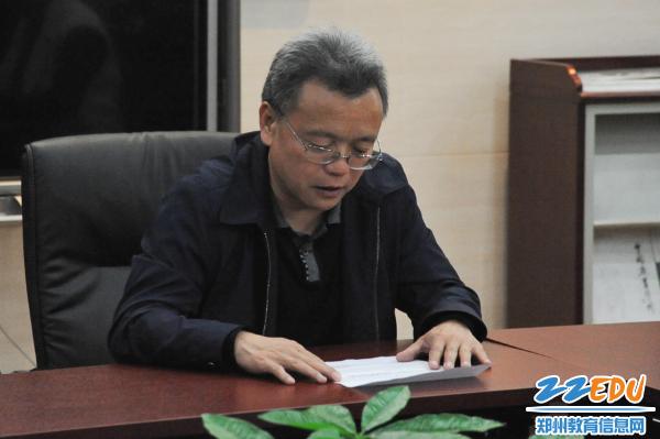郑州市教育局组干处处长崔林斌宣读干部任免文件