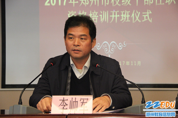 为了加强校长队伍建设,落实校长持证上岗制度,11月13日上午,郑州市教育局校级干部任职资格培训在河南师范大学教育学院开班,局属学校和单位的94校级干部将在这里参加为期两周的第一阶段的研修培训。河南师范大学教育学院党委书记李帅军等参加开班仪式。