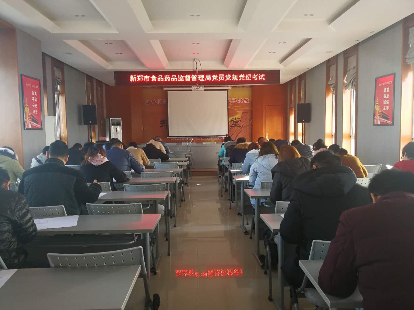 12月25日上午,新郑市食药监管局组织党员干部职工参加党规党纪考试,局党组成员、纪检组长王向阳进行监考。
