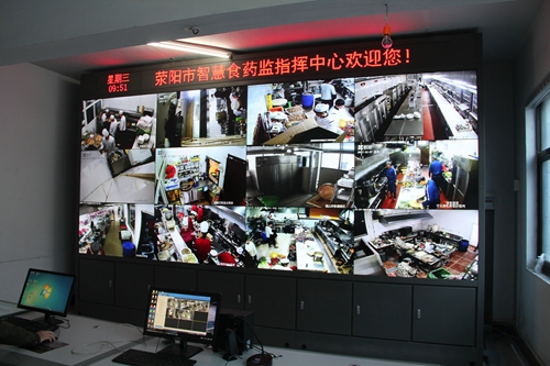 四是“明厨亮灶”系统。2017年,荥阳市食药局实施了“互联网+明厨亮灶”工程,在全市100家大中型餐饮单位和全部院校后厨无死角安装监控探头,将餐饮单位后厨视频直接连入数字中心电子监管平台,对餐馆、学校食堂食品加工和后厨环境进行“网上直播”。同时在手机端搭载“明厨亮灶”系统APP,可以同步实时监控、全面检查餐饮服务单位和学校食堂厨房的卫生情况、工作人员装备、操作规范等,及时发现、纠正食材加工制作过程中存在的不足,查处违法违规行为,切实为食品安全监管添加“电子眼”“护航盾”。