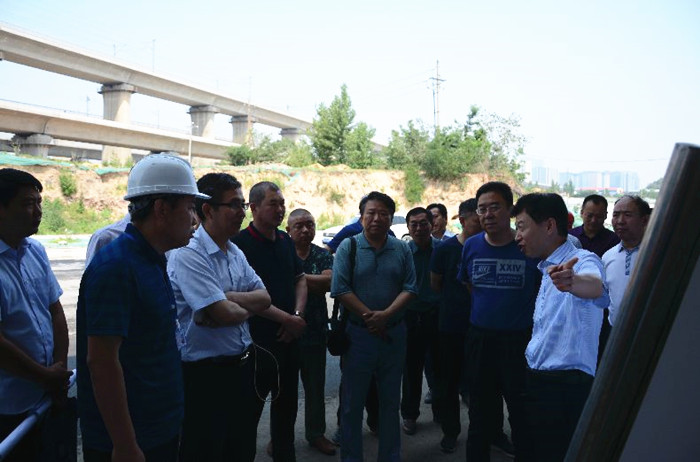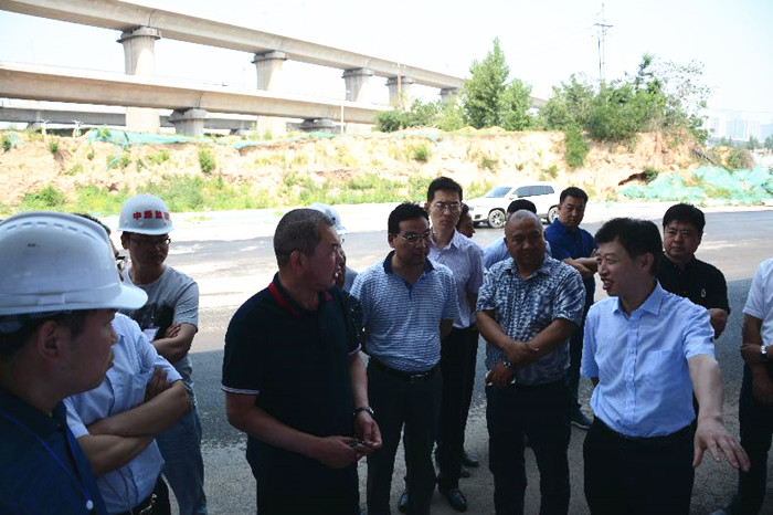 5月20日上午,郑州市人民政府副秘书长孙建功深入东三环(107辅道)快速化工程PPP项目施工一线,现场察看项目征迁工作进展情况,市建委副主任李俊铭、项目经理李锦林、副经理马景钦、郑东新区征收办、经开区征收办、项目公司、总承包部、铁路代建单位等相关单位主要负责人陪同察看。