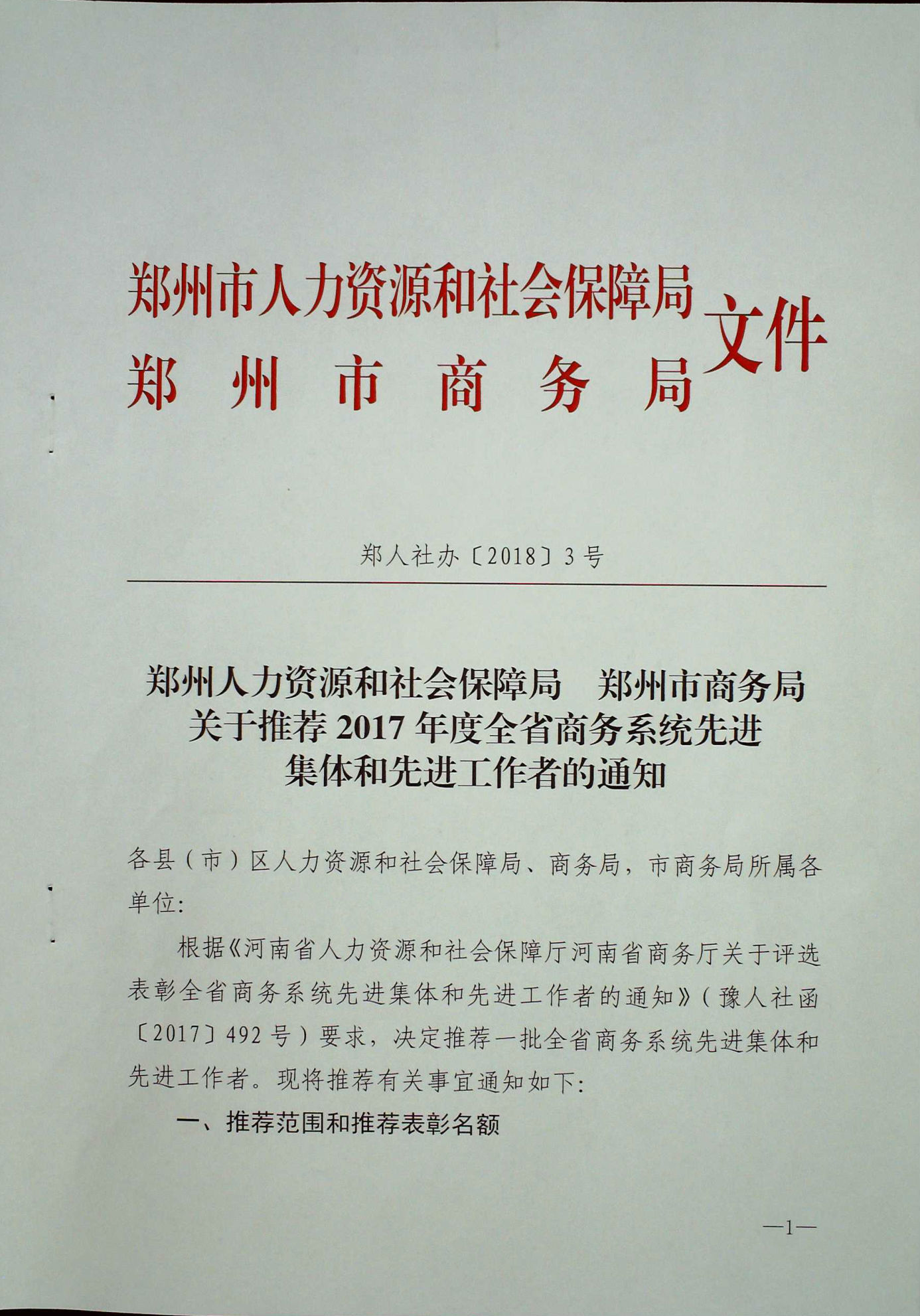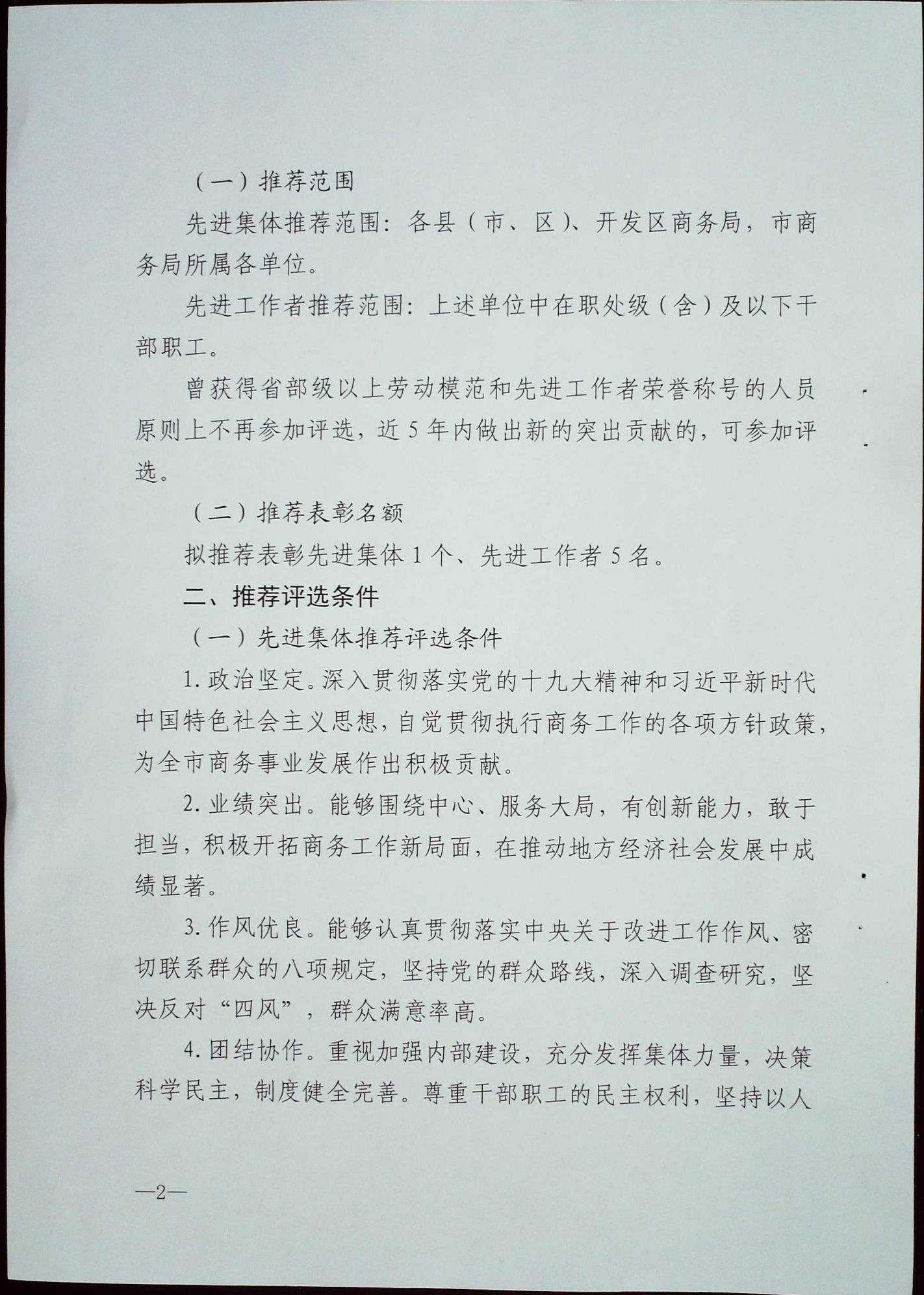 关于推荐2017年度全省商务系统先进 集体和先进工作者的通知