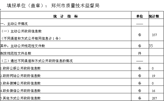 (二)通过门户网站主动公开政府信息的情况。2016年,我局在做好办公场所政务公开的基础上,在郑州市质监局门户网站发布各类政务信息357条,省局网站采用政务信息37条,在市政府门户网站发布信息19条,向市委、市政府政务信息办刊物报送信息67条。