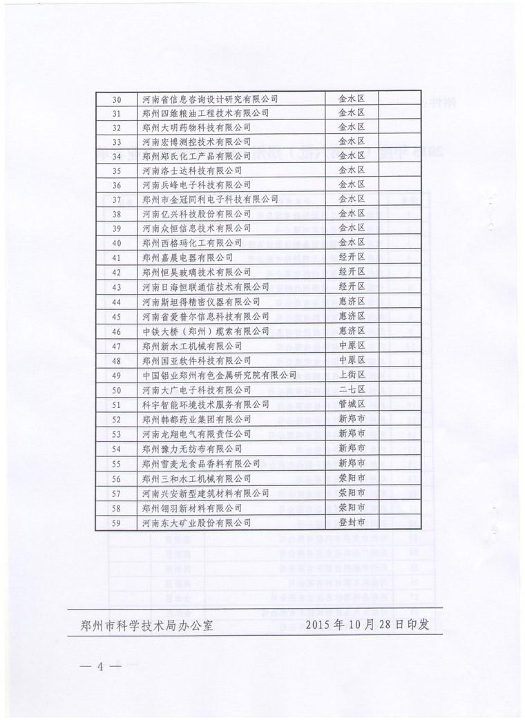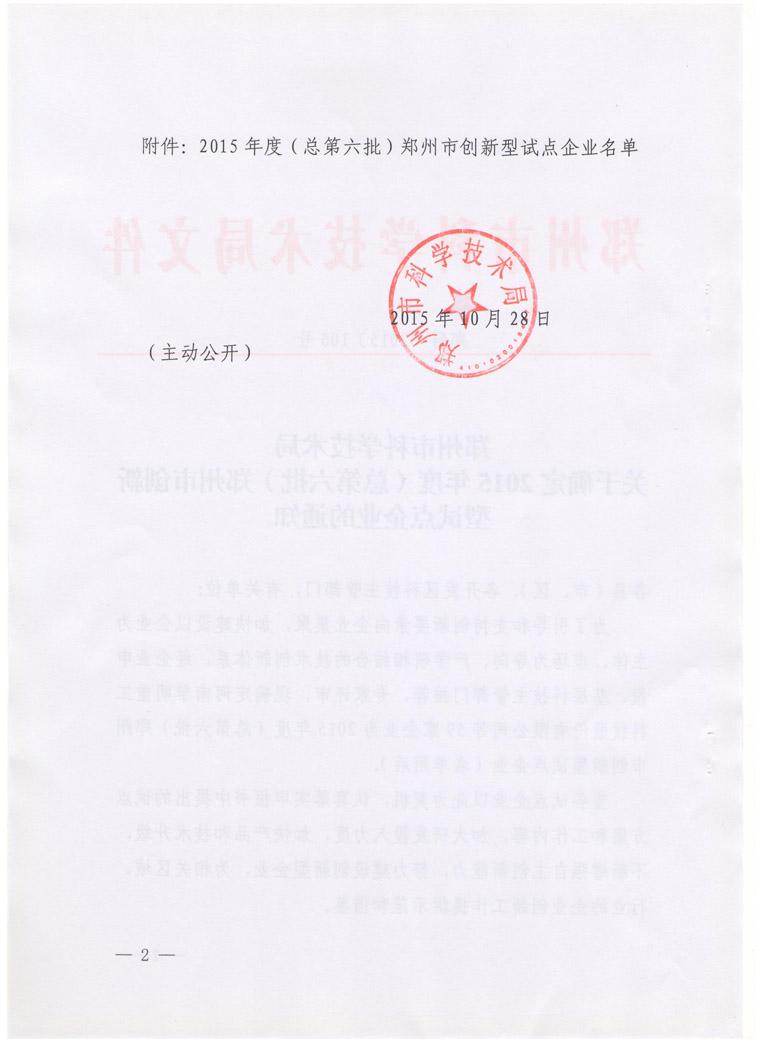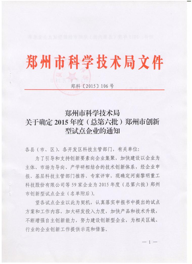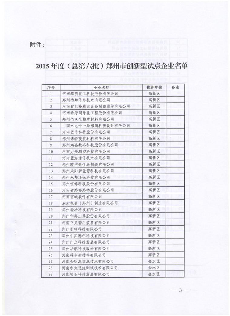 关于确定2015年度(总第六批)郑州市创新型试点企业的通知