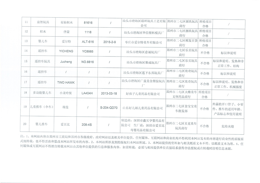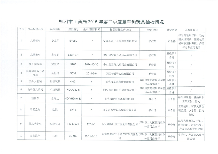 2015年第二季度,市工商局委托深圳市华测检测技术股份有限公司对我市流通领域销售的童车和玩具进行了抽查检验,共抽取样品20个批次,对抽取的样品按照其标注的执行标准分别进行了检验。经检验,11个批次的样品被判定为不合格,合格率为45%。