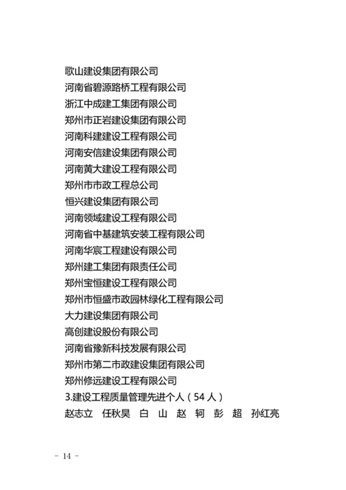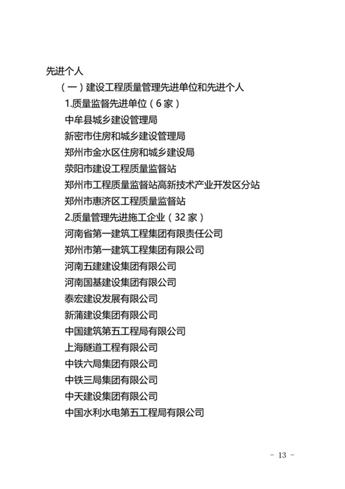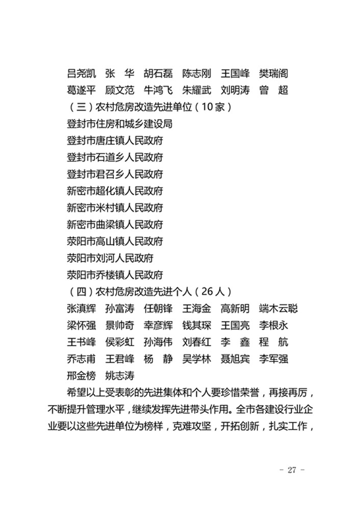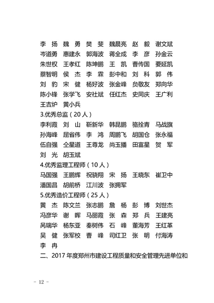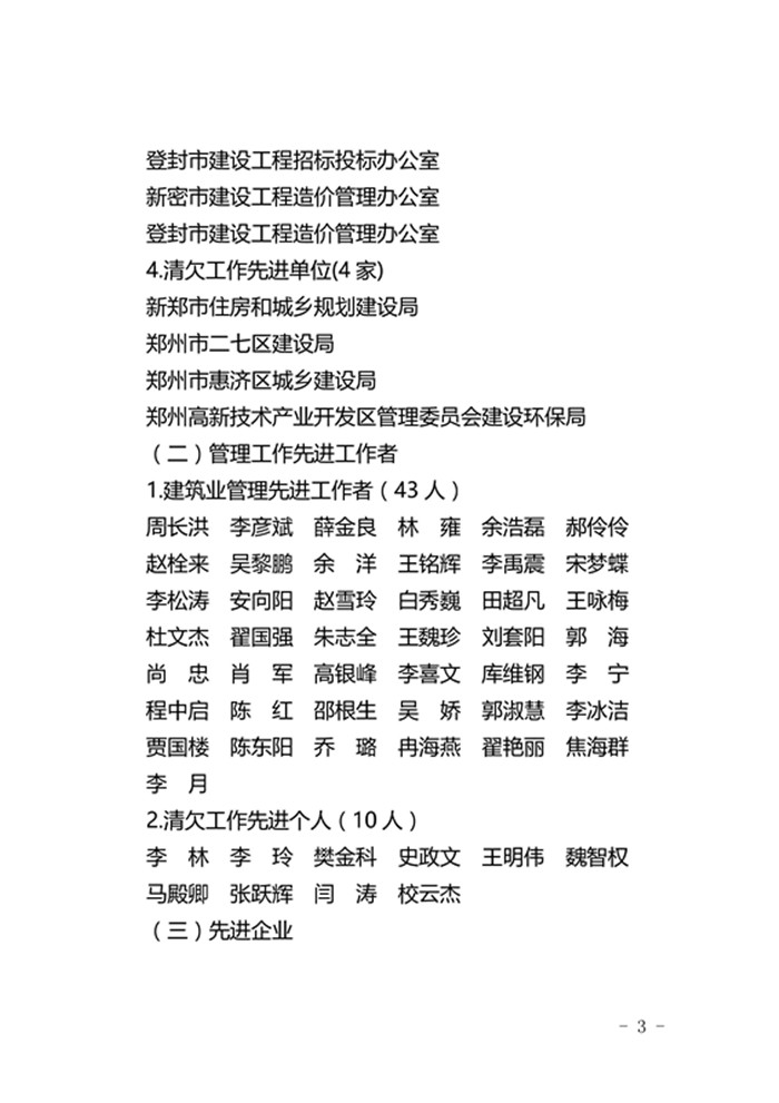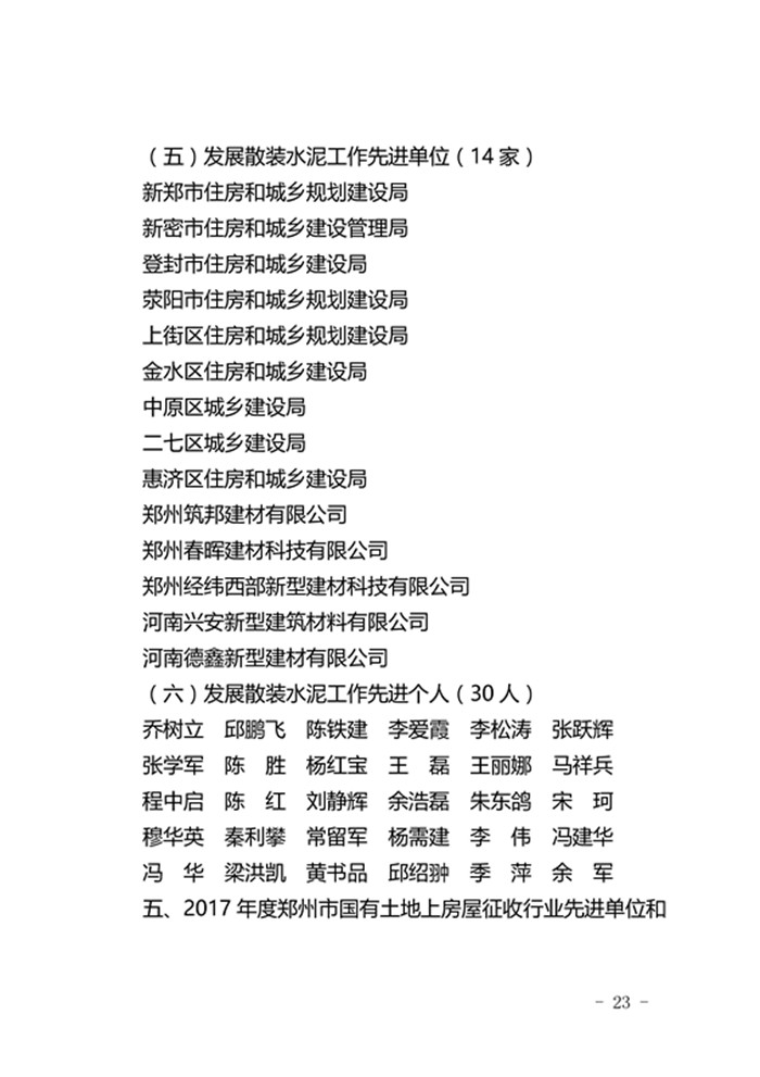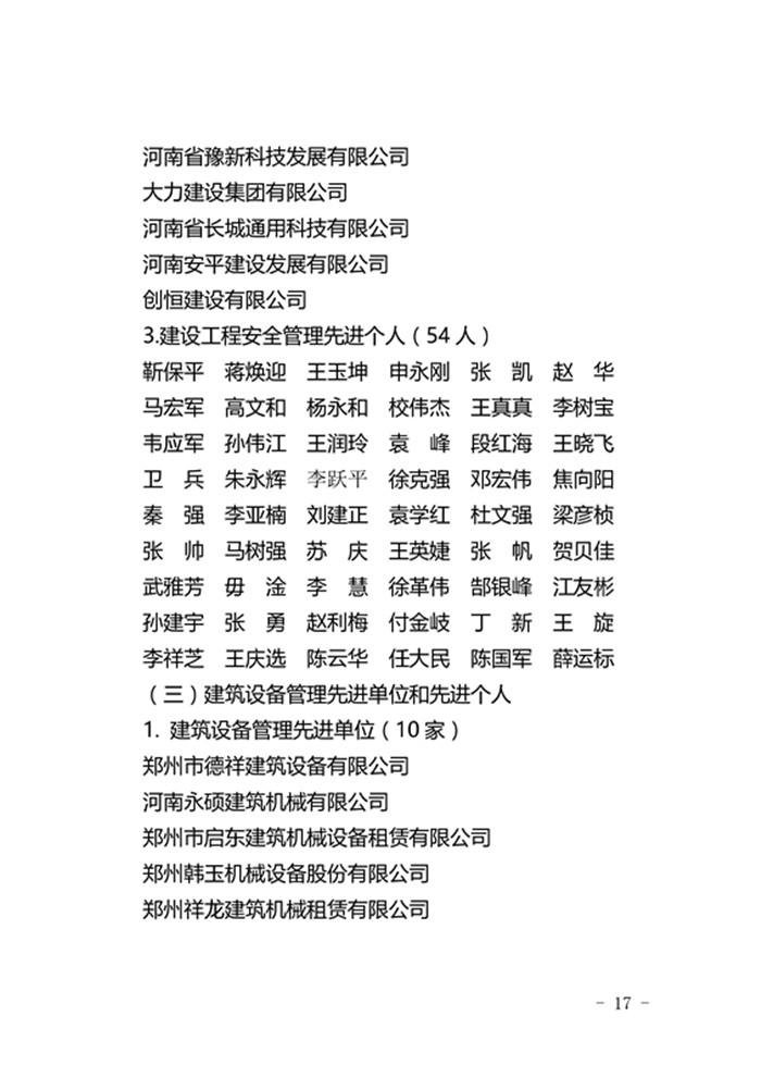 郑州市城乡建设委员会关于表彰2017年度建设系统先进单位先进企业和先进个人的通报