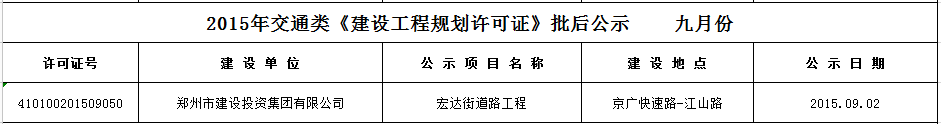 2015年交通类《建设工程规划许可证》批后公示 九月份