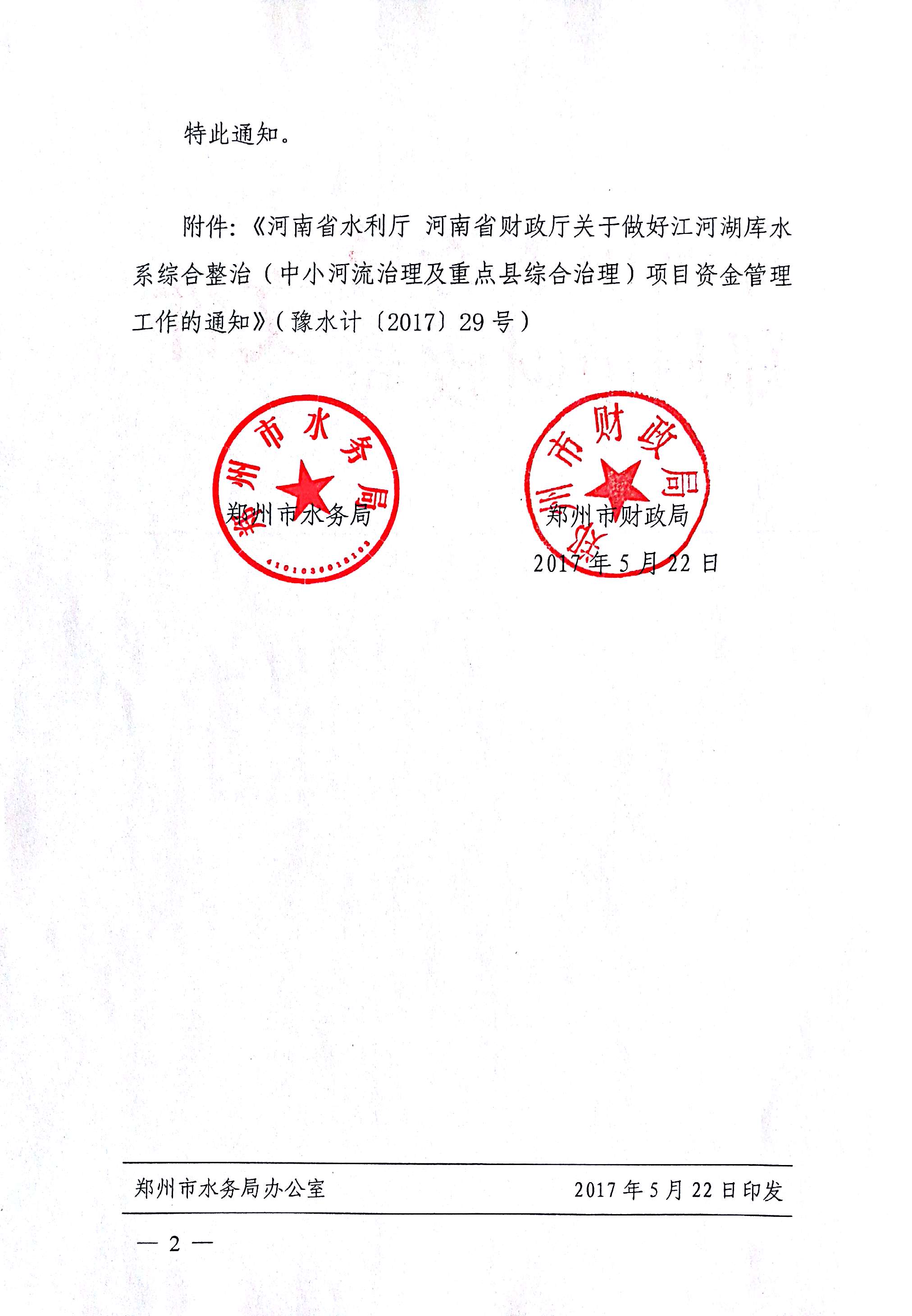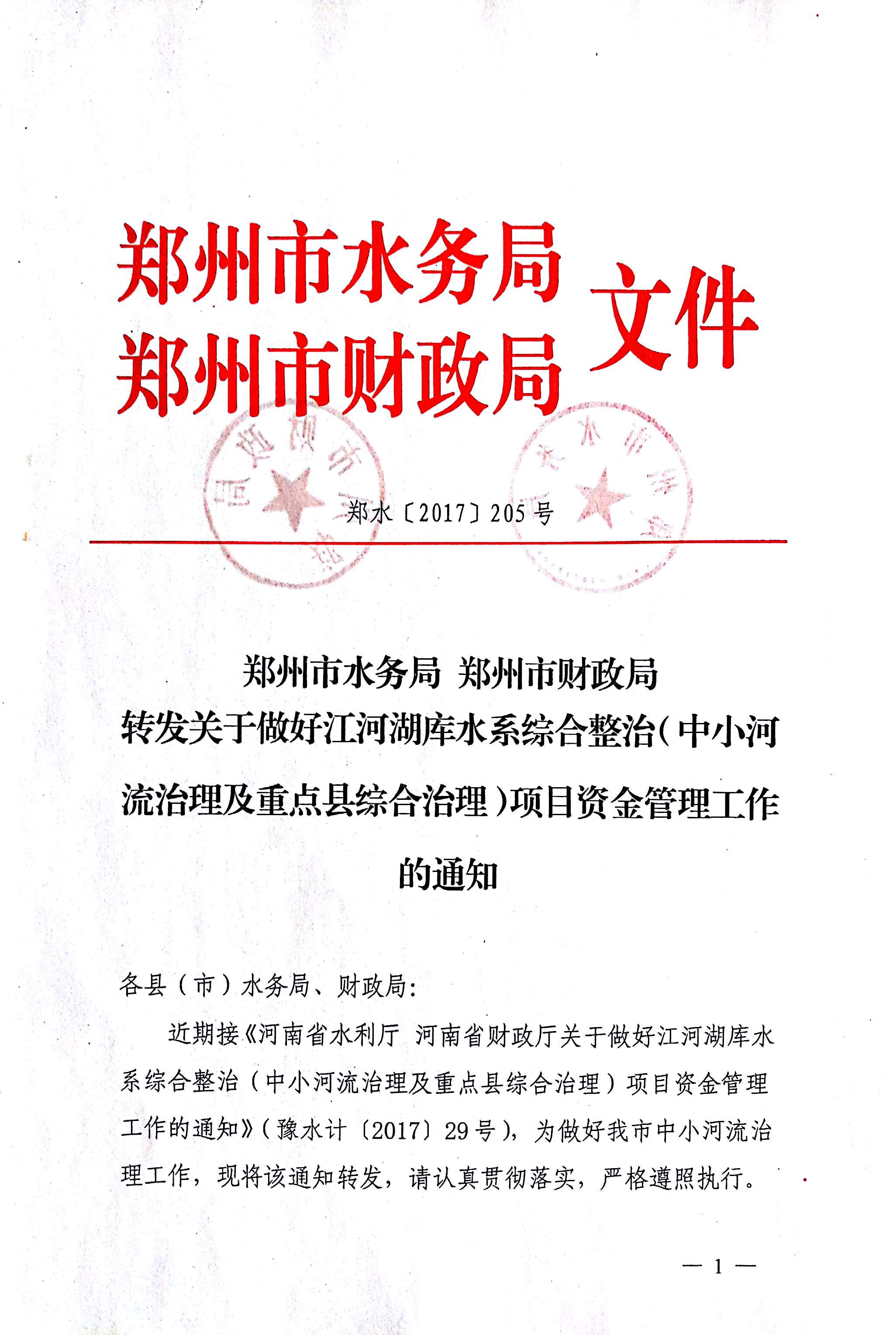 郑州市水务局 郑州市财政局转发关于做好江河湖库水系综合整治(中小河流治理及重点县综合治理)项目资金管理工作的通知