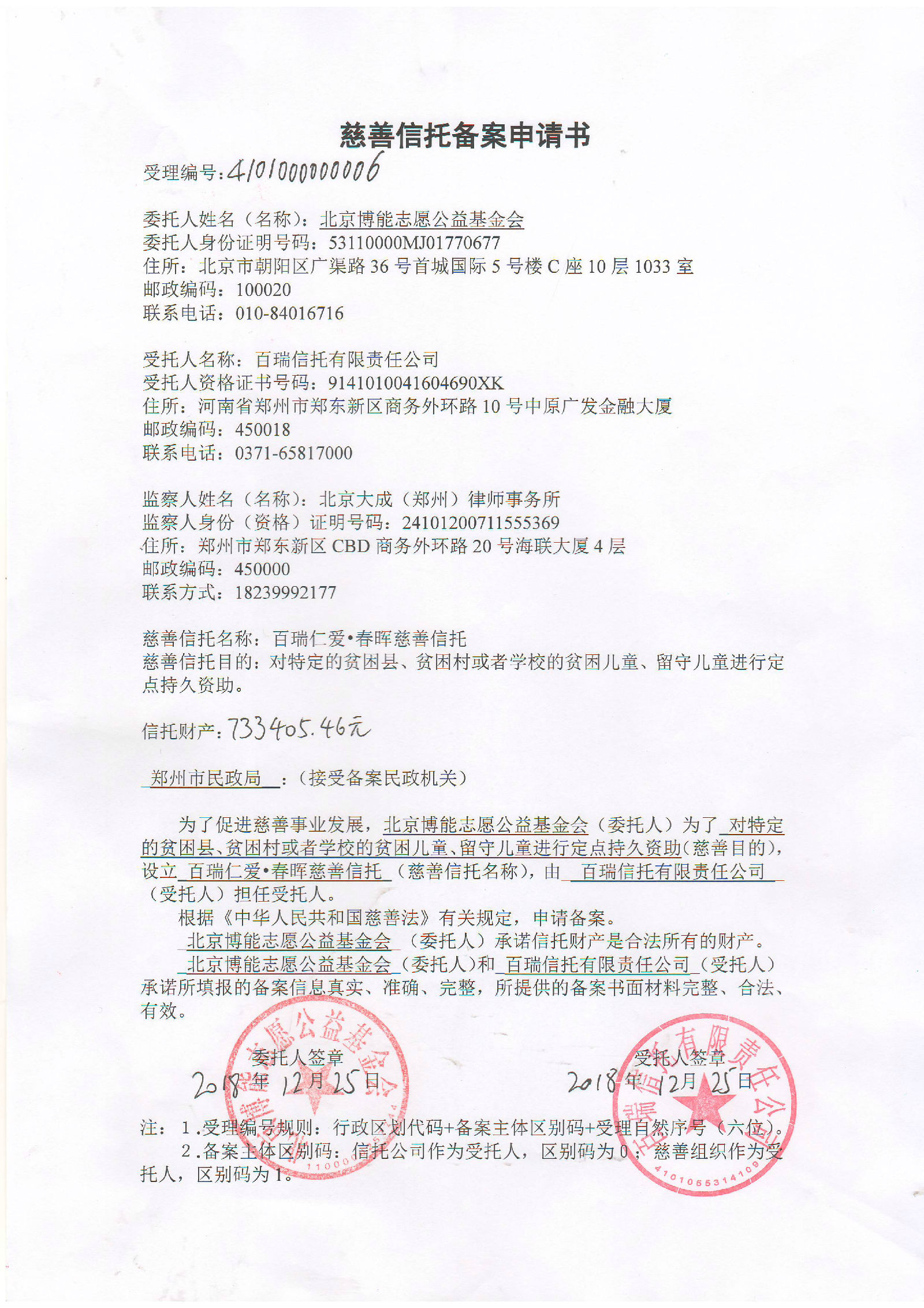 附件:“百瑞仁爱·春晖慈善信托”备案申请书