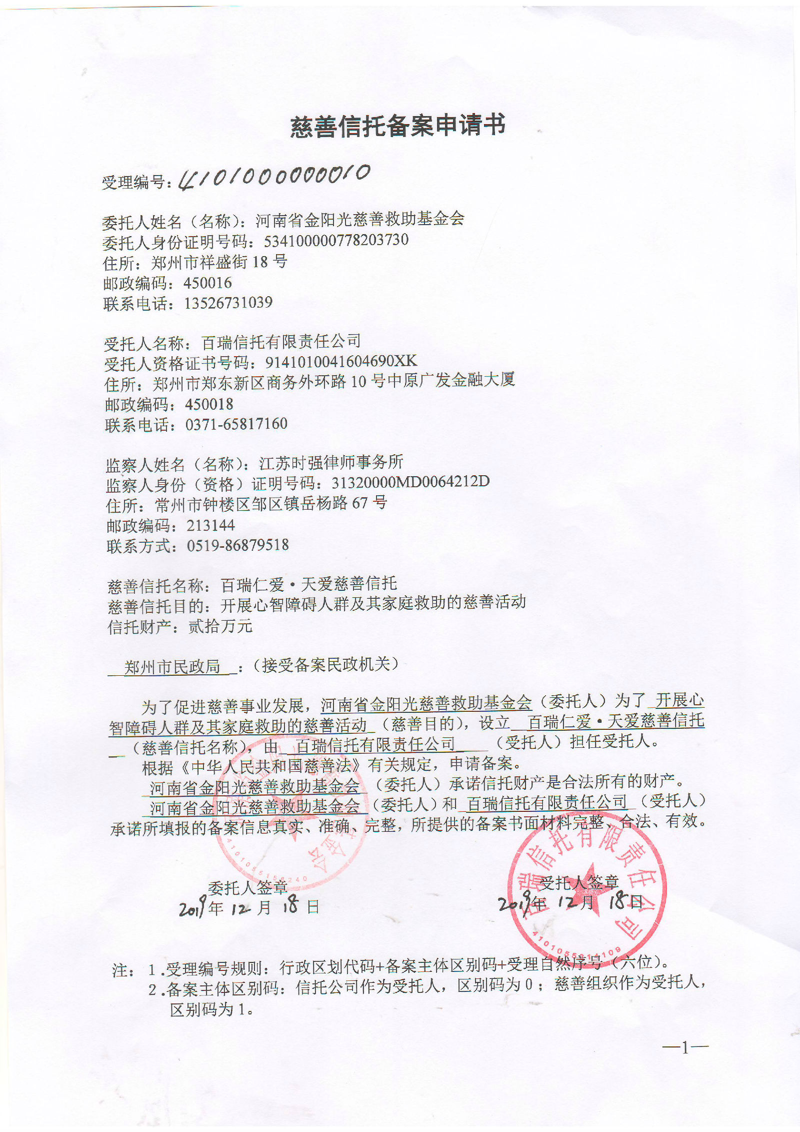 附件:“百瑞仁爱·天爱慈善信托”备案申请书