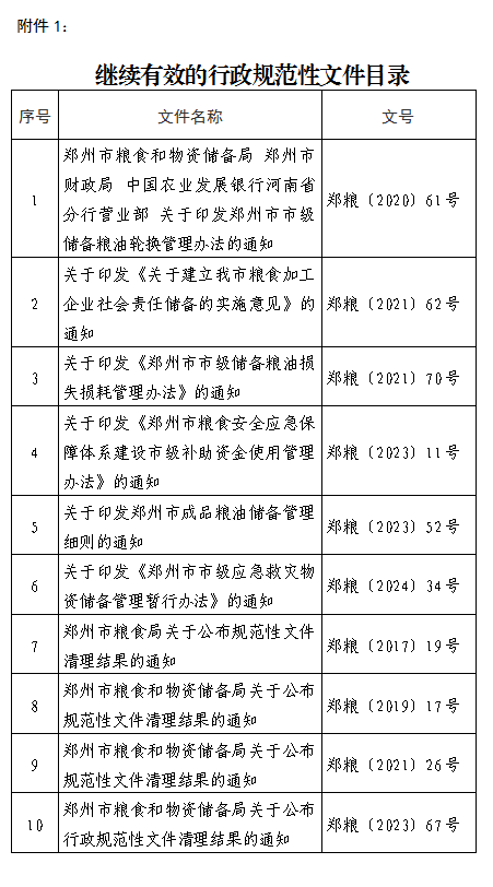 根据《郑州市行政规范性文件管理规定》(郑州市人民政府令第241号)要求,我局对2024年12月31日前制定且现行有效的行政规范性文件进行了全面清理。经确认,继续有效的行政规范性文件10件,废止的行政规范性文件2件,现予公布。