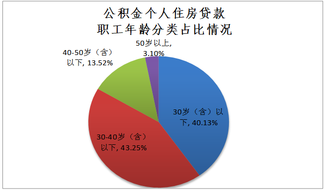 贷款职工中,30岁(含)以下占40.13%;30岁-40岁(含)占43.25%;40岁-50岁(含)占13.52%;50岁以上占3.1%。首次申请贷款占92.87%;二次及以上申请贷款占7.13%。中、低收入占94.61%,高收入占5.39%。