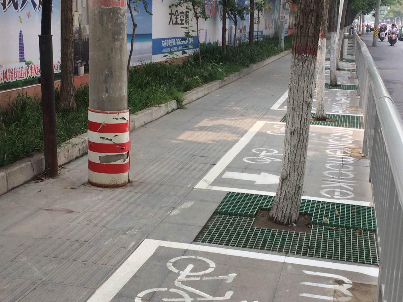2.郑州市道路规划人行道宽基本为5米,其中包含道路侧石(15-625px)、边石250px,这样人行道净宽4.65-4.75米,人行道上还要栽行道树,树池一般宽1.5米,间距5米,将这些最基本的设施安装完毕,人行道实际能供行走的有效宽度也就剩3.15-3.25米了。