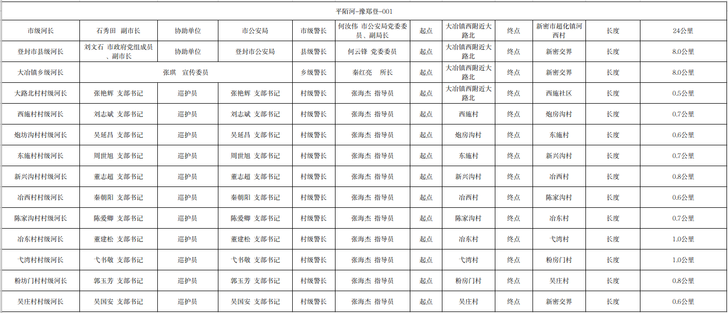 关于平陌河登封市大冶镇段河长、警长名单的公示(平陌河-豫郑登-平陌河-001)