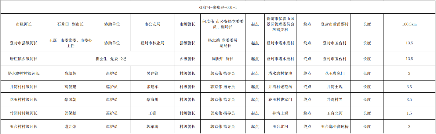 关于双洎河登封市唐庄镇段河长、警长名单的公示(双洎河-豫郑登-双洎河-001-1)