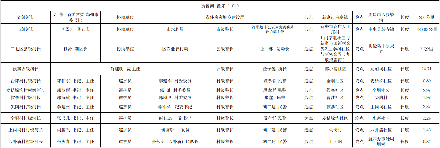 关于贾鲁河二七区侯寨乡段河长、警长名单的公示(贾鲁河-豫郑二-012)