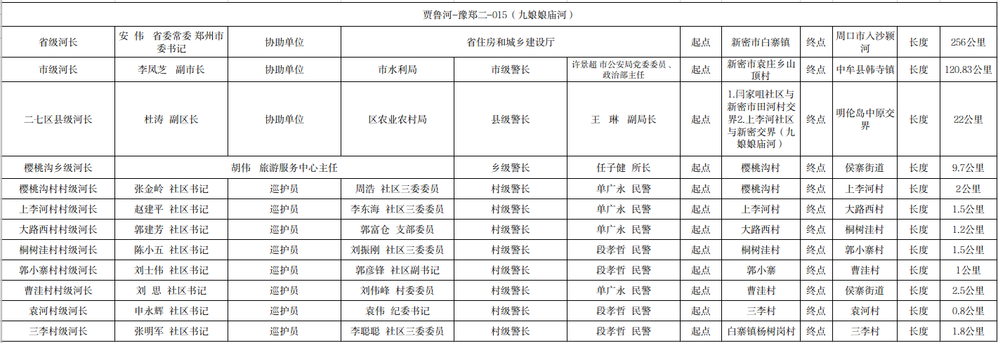 关于贾鲁河二七区樱桃沟乡段河长、警长名单的公示(贾鲁河-豫郑二-015)