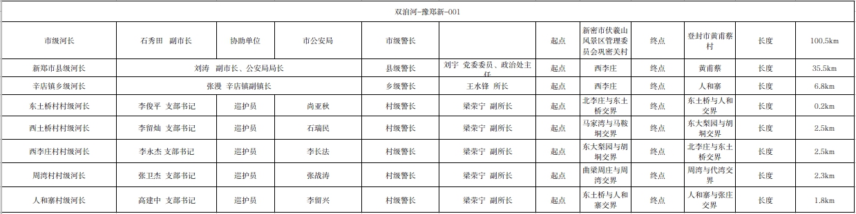 关于双洎河新郑市辛店镇段河长、警长名单的公示(双洎河-豫郑新-双洎-001)