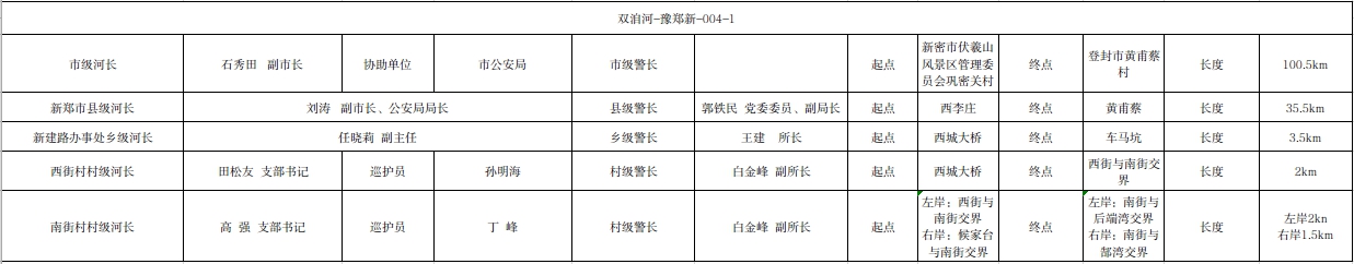 关于双洎河新郑市新城路街道办事处段河长、警长名单的公示(双洎河-豫郑新-双洎-004)