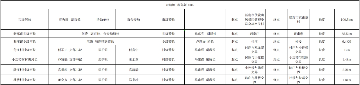 关于双洎河新郑市和庄镇段河长、警长名单的公示(双洎河-豫郑新-双洎-006)