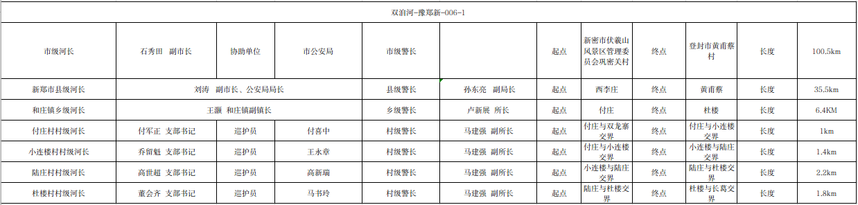 关于双洎河新郑市和庄镇段河长、警长名单的公示(双洎河-豫郑新-双洎-006-1)