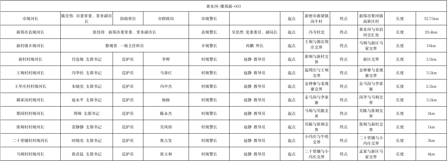 关于黄水河新郑市新华路街道办事处段河长、警长名单的公示(黄水河-豫郑新-黄水-003)