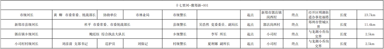 关于十七里河新郑市龙湖镇段河长、警长名单的公示(十七里河-豫郑新-十七-001)