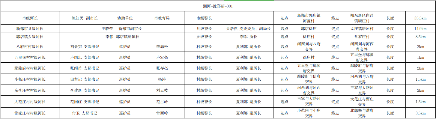 关于潮河新郑市郭店镇段河长、警长名单的公示(潮河-豫郑新-潮-001)