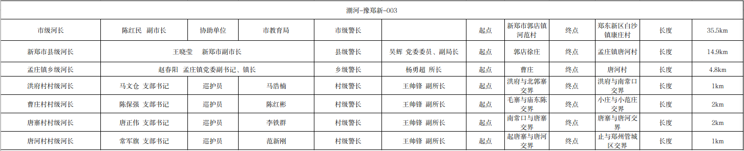 关于潮河新郑市孟庄镇段河长、警长名单的公示(黄水河-豫郑新-潮-003)