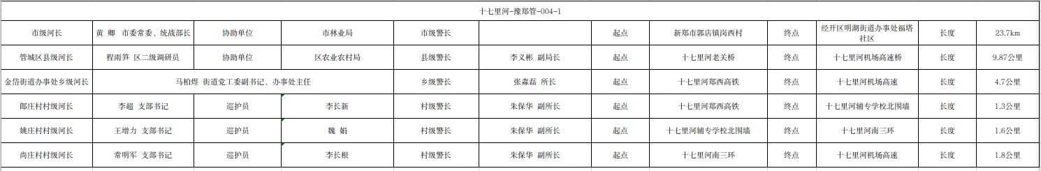关于十七里河管城区南曹街道办事处段河长、警长名单的公示(十七里河-豫郑管-004-1)