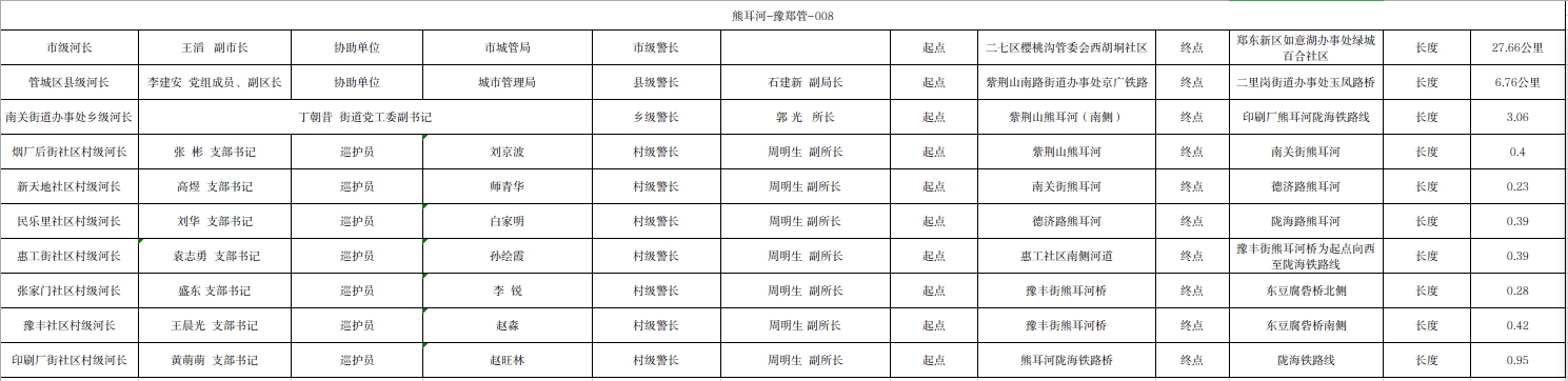 关于熊耳河管城区南关街道办事处段河长、警长名单的公示(熊耳河-豫郑管-008)