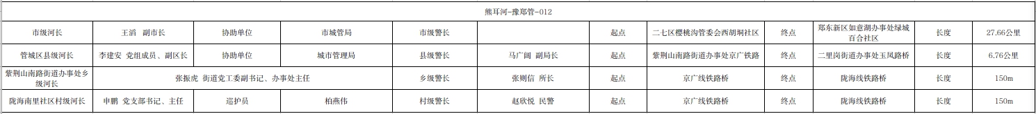 关于熊耳河管城区紫荆山南路街道办事处段河长、警长名单的公示(熊耳河-豫郑管-012)