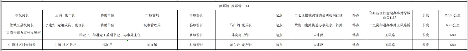 关于熊耳河管城区二里岗街道办事处段河长、警长名单的公示(熊耳河-豫郑管-014)