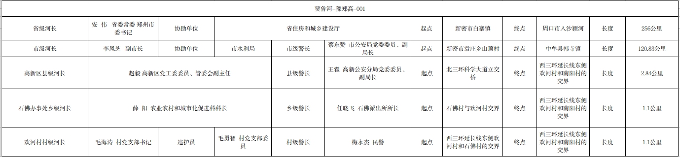 关于贾鲁河高新区石佛办事处段河长、警长名单的公示(贾鲁河-豫郑高-001)