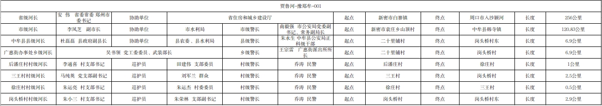 关于贾鲁河中牟县广惠街办事处段河长、警长名单的公示(贾鲁河-豫郑牟-001)