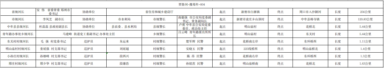 关于贾鲁河中牟县青年路街道办事处段河长、警长名单的公示(贾鲁河-豫郑牟-004)