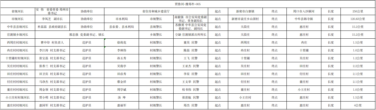 关于贾鲁河中牟县官渡镇段河长、警长名单的公示(贾鲁河-豫郑牟-005)