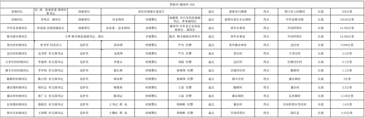 关于贾鲁河韩寺镇段河长、警长名单的公示(贾鲁河-豫郑牟-006)