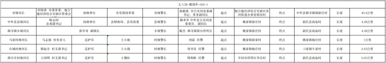 关于丈八沟中牟县韩寺镇段河长、警长名单的公示(丈八沟-豫郑牟-024-1)