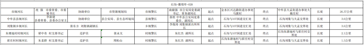 关于石沟中牟县刘集镇段河长、警长名单的公示(石沟-豫郑牟-028)