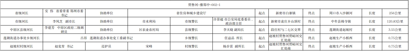 关于贾鲁河中原区莲湖段河长、警长名单的公示(贾鲁河-豫郑中-002-1)