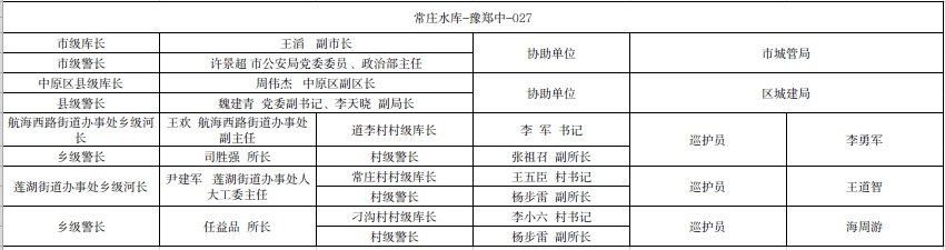 关于常庄水库河长、警长名单的公示(豫郑中-027)