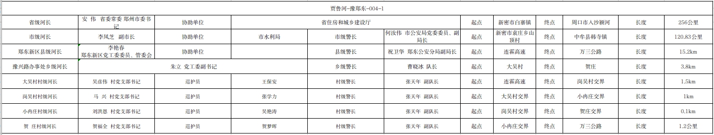关于贾鲁河郑东新区豫兴街办事处段河长、警长名单的公示(贾鲁河-豫郑东-004-1)