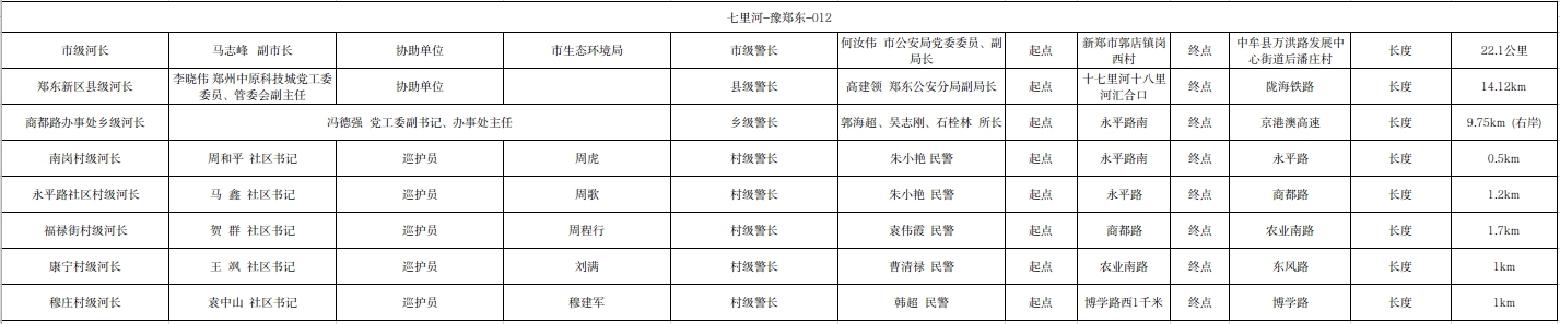 关于七里河郑东新区商都路办事处段河长、警长名单的公示(七里河-豫郑东-012)