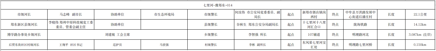 关于七里河郑东新区博学路办事处段河长、警长名单的公示(七里河-豫郑东-014)