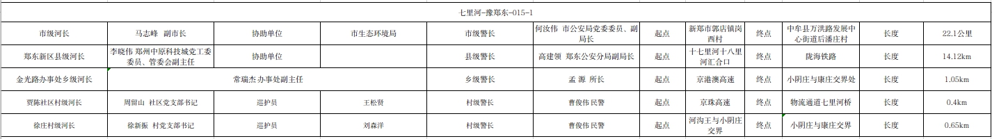 关于七里河郑东新区金光路办事处段河长、警长名单的公示(七里河-豫郑东-015-1)