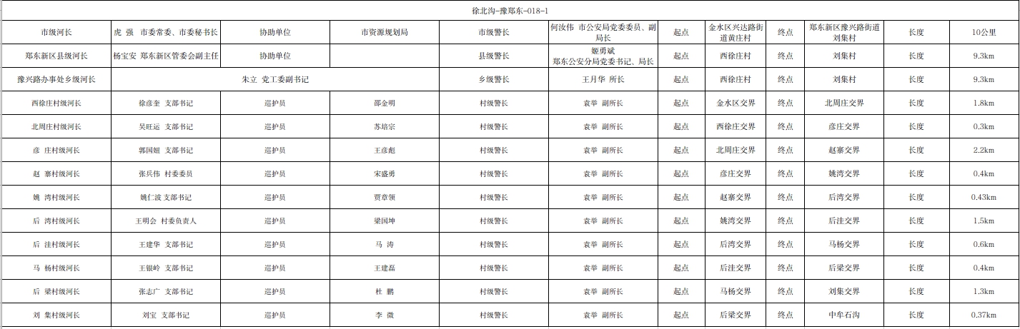 关于徐北沟郑东新区豫兴路办事处段河长、警长名单的公示(徐北沟-豫郑东-018-1)