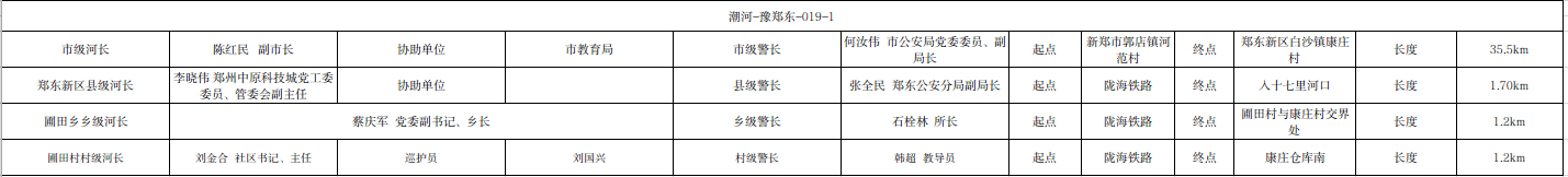 关于潮河郑东新区圃田乡办事处段河长、警长名单的公示(潮河-豫郑东-019-1)
